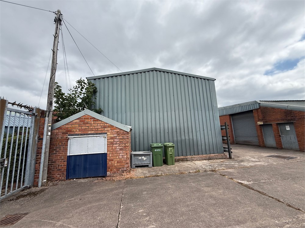 A modern, detached industrial/warehouse unit of steel portal frame construction, clad in profile metal sheeting.